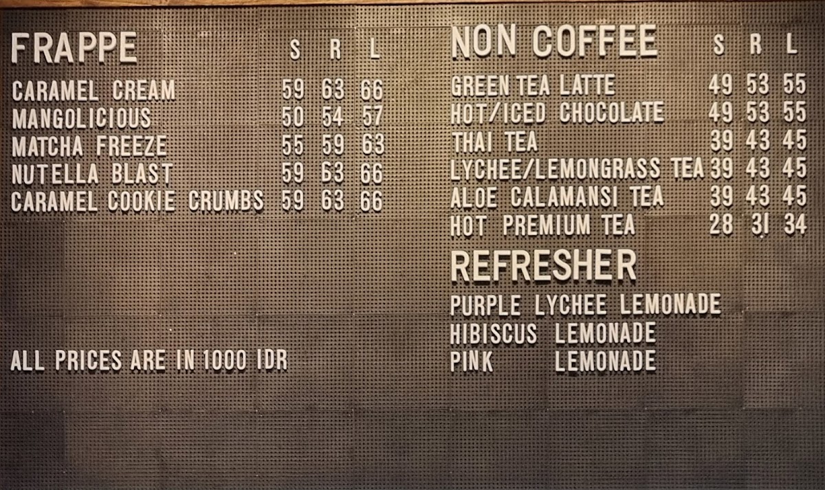 With reasonable prices around 175,200 IDR for two, Djournal Coffee stands out in the bustling mall, inviting you to unwind and savor every sip.